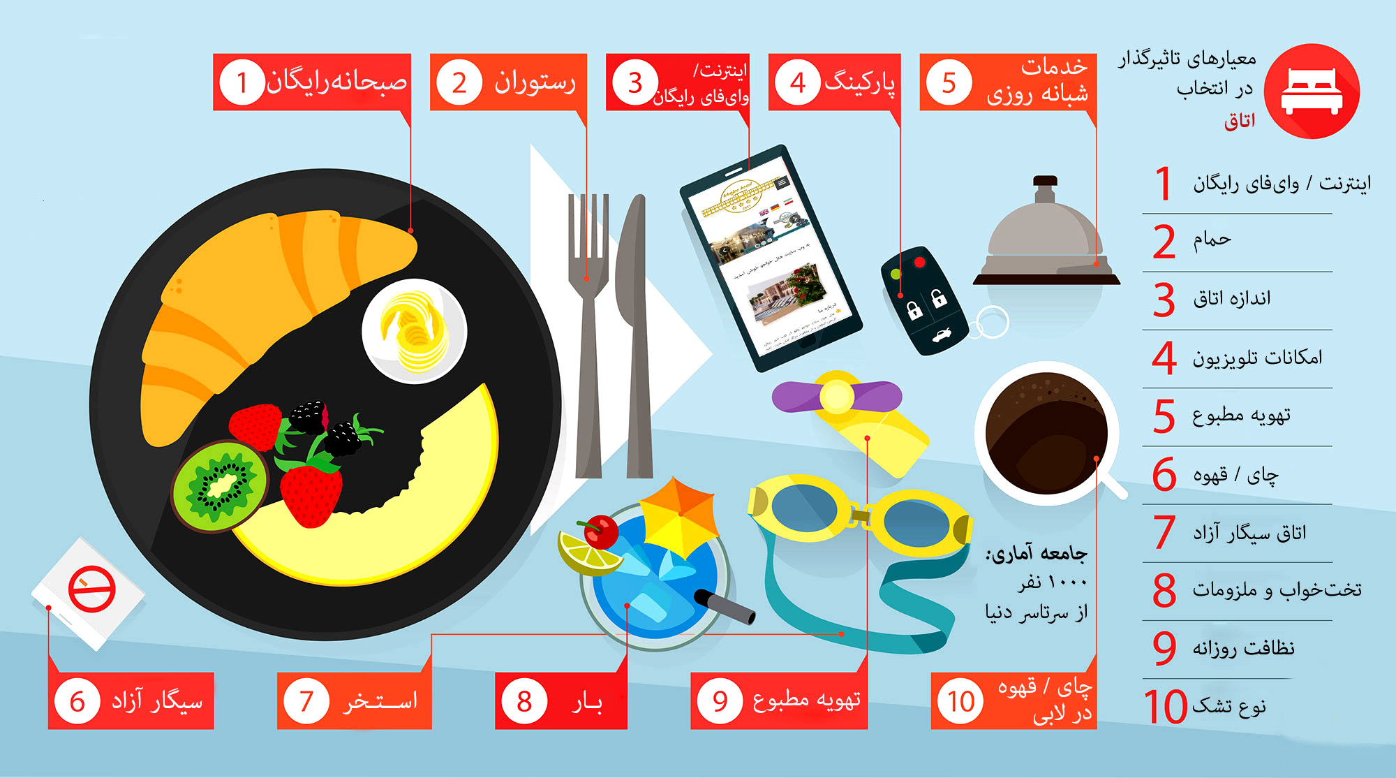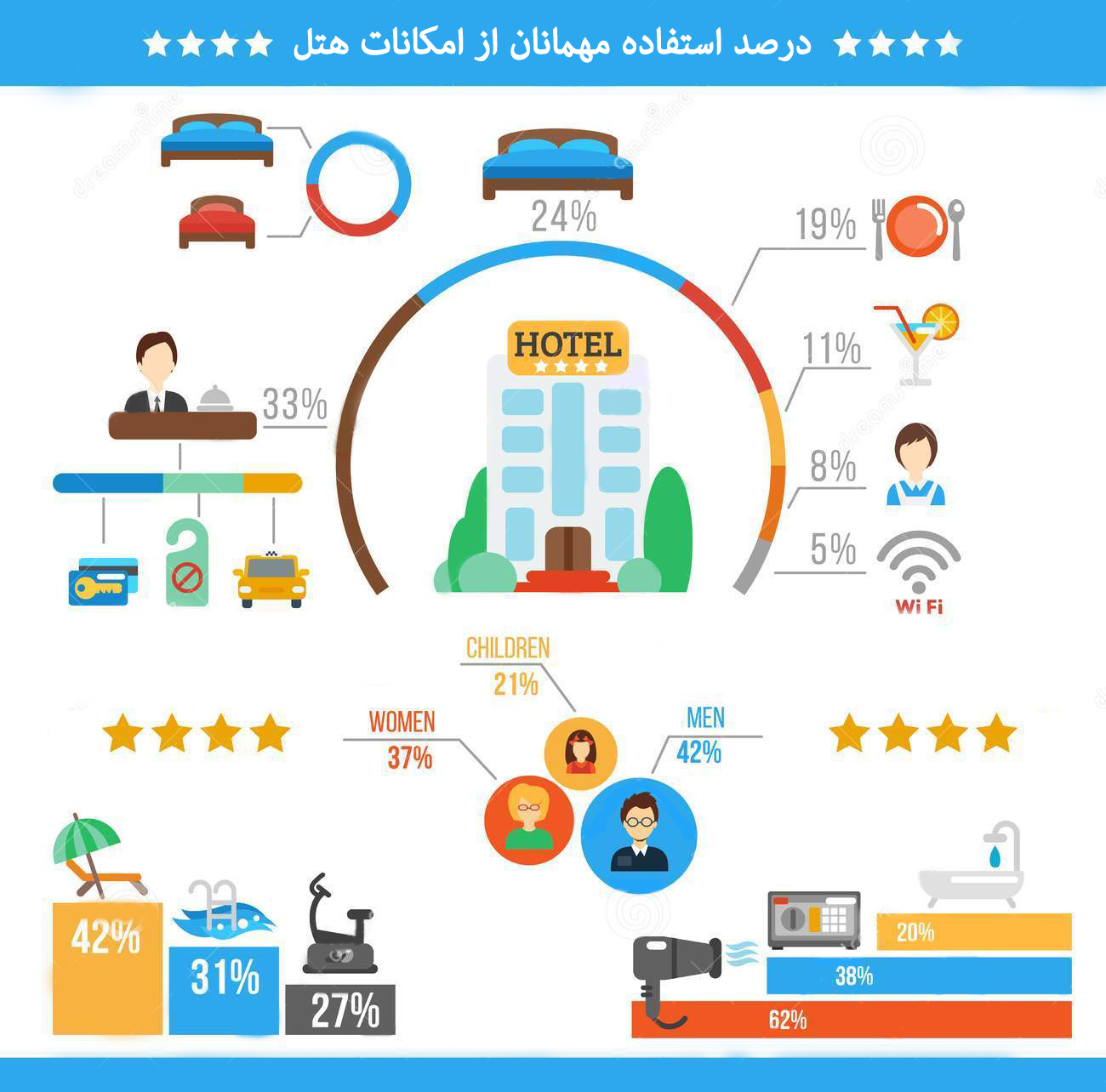 اینفو گرافی درصد استفاده مهمانان از امکانات هتل